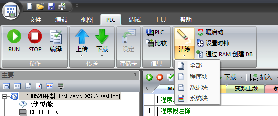1.电脑连接上PLC,在编程软件,PLC—清除—全部
